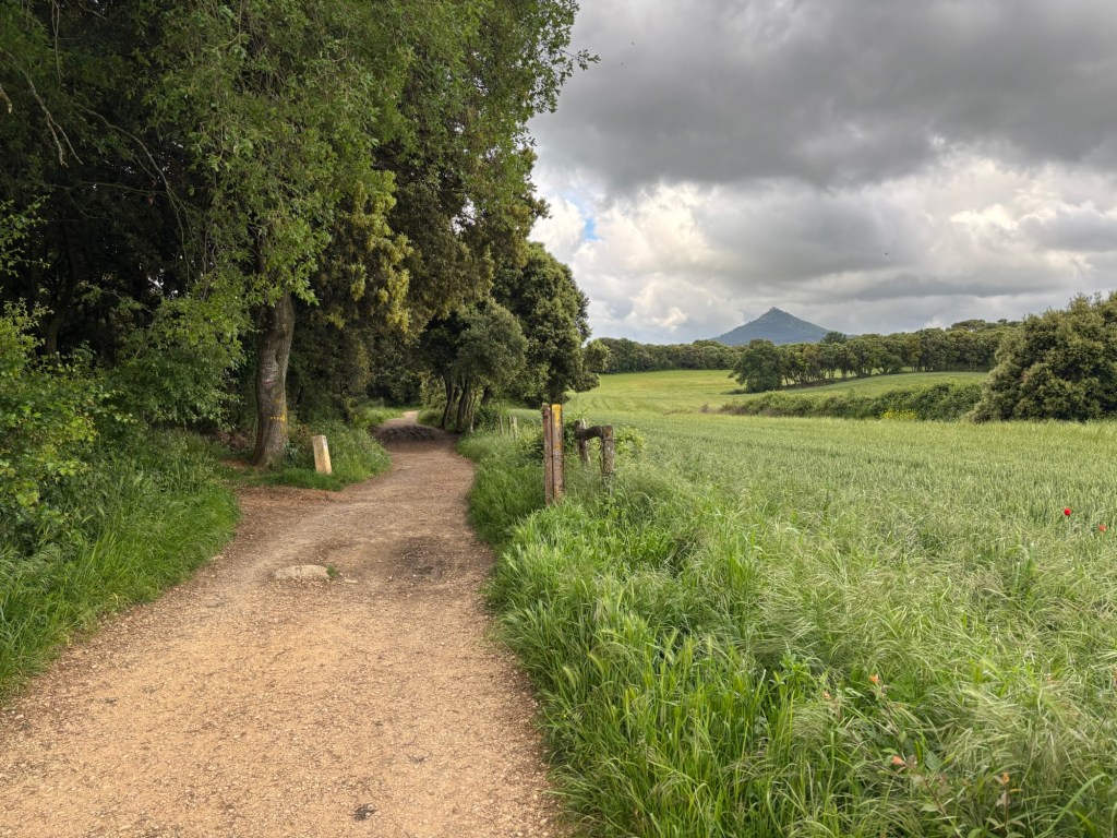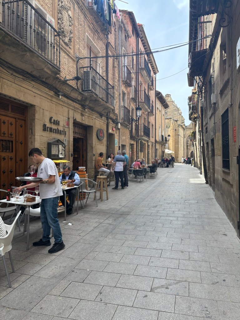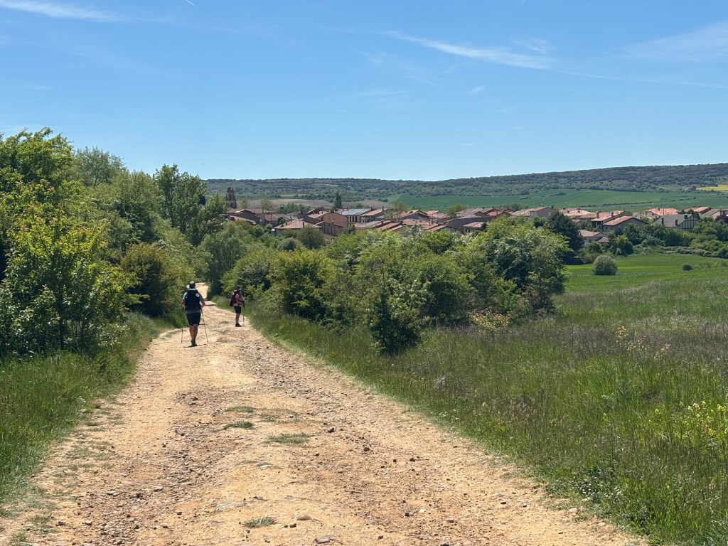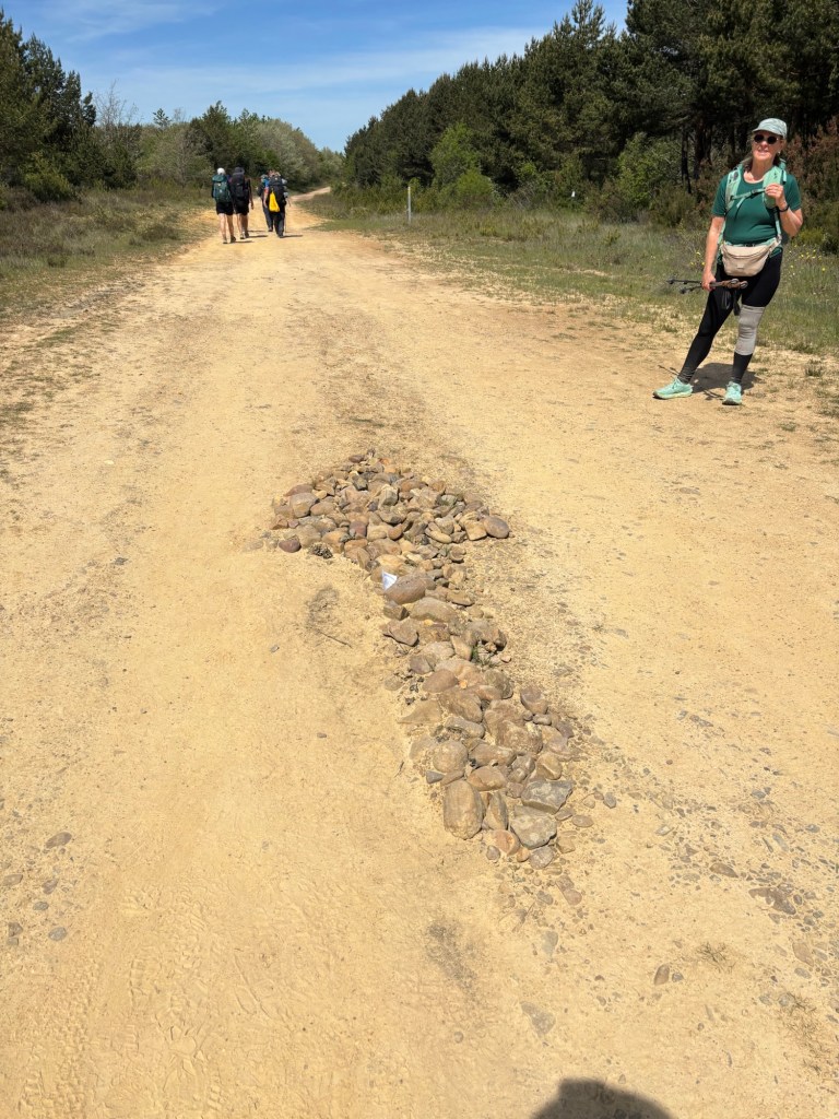 There was a circle of stones off to the left of the road, and I wanted to see what they were. They reminded me of the stones at the top of Alto de Perdon that were a Civil War monument. At that moment I realized that both Lila and I were both used to walking at our own pace, and I am a habitual reader of signs, plaques, and lover of views. I stop a lot. I sensed Lila was ready to make better time. I was also in search of coffee because I left Ages without having breakfast. When we got to the next village I said I was stopping for coffee and she said she could wait longer. We said, “Buen Camino,” and she walked ahead.