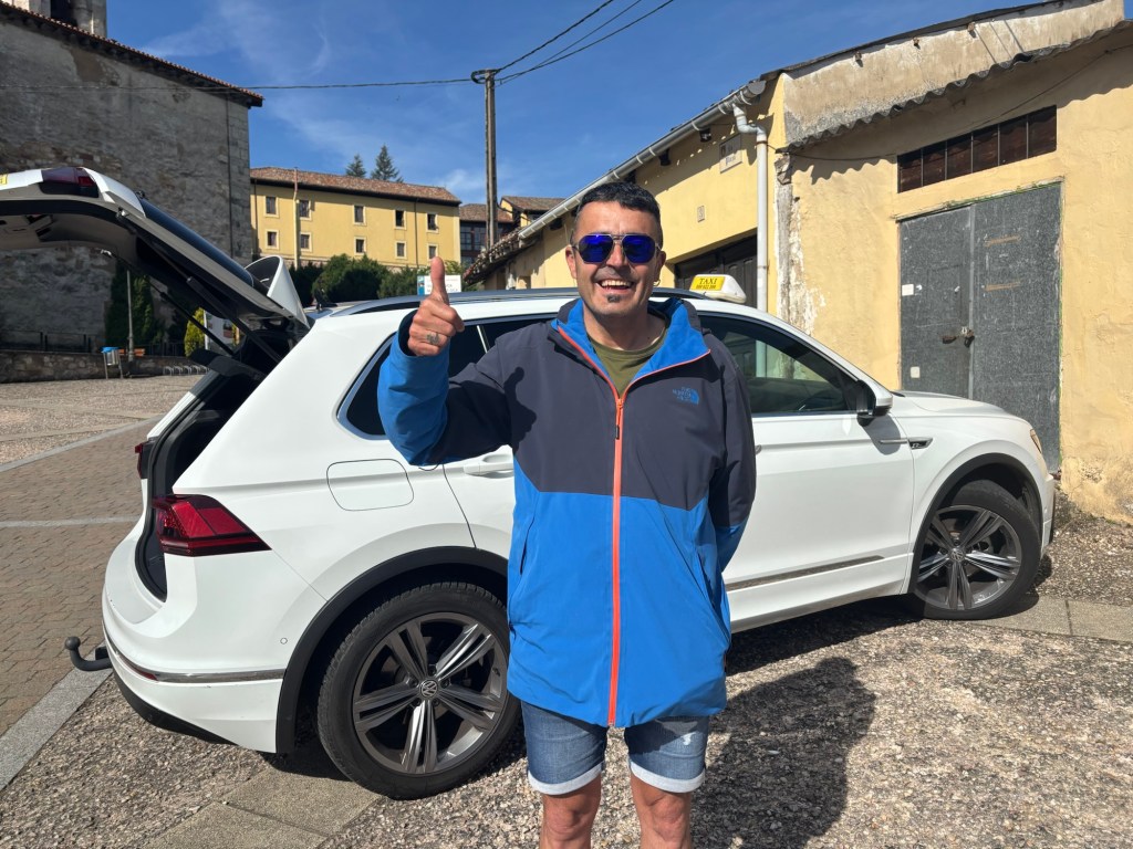 The taxi driver arrived and we sped off down the two lane road, then got on the motorway and then took several turns off it into roundabouts. As the crow flies it’s not that far from Burgos so the roads were built for suburban traffic.