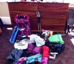 I’ve been home from Spain for a week, and my pack has been sitting at the end of the bed, half-unpacked. Today I began to put it away in the garage.