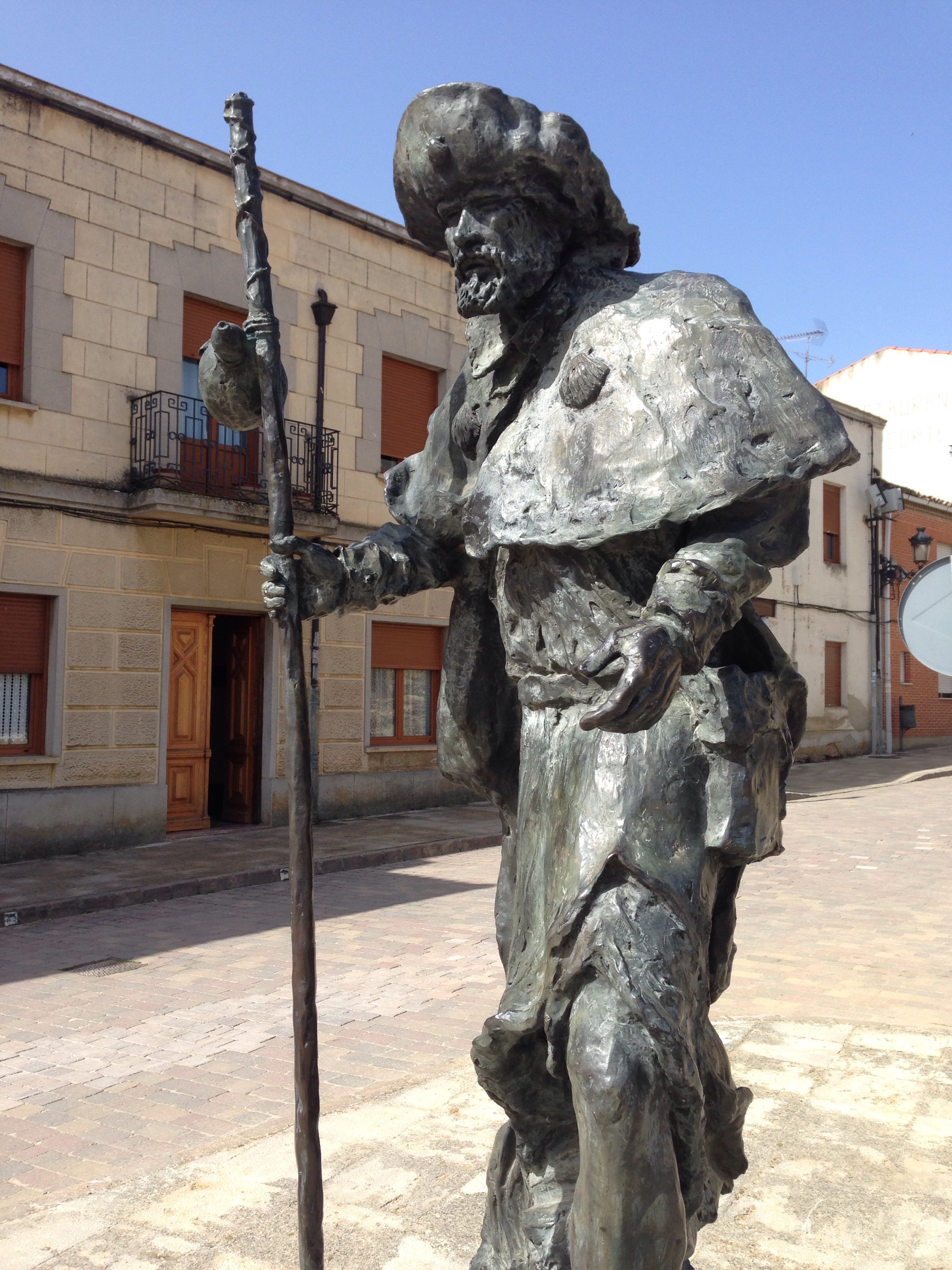 There was a circle of stones off to the left of the road, and I wanted to see what they were. They reminded me of the stones at the top of Alto de Perdon that were a Civil War monument. At that moment I realized that both Lila and I were both used to walking at our own pace, and I am a habitual reader of signs, plaques, and lover of views. I stop a lot. I sensed Lila was ready to make better time. I was also in search of coffee because I left Ages without having breakfast. When we got to the next village I said I was stopping for coffee and she said she could wait longer. We said, “Buen Camino,” and she walked ahead.