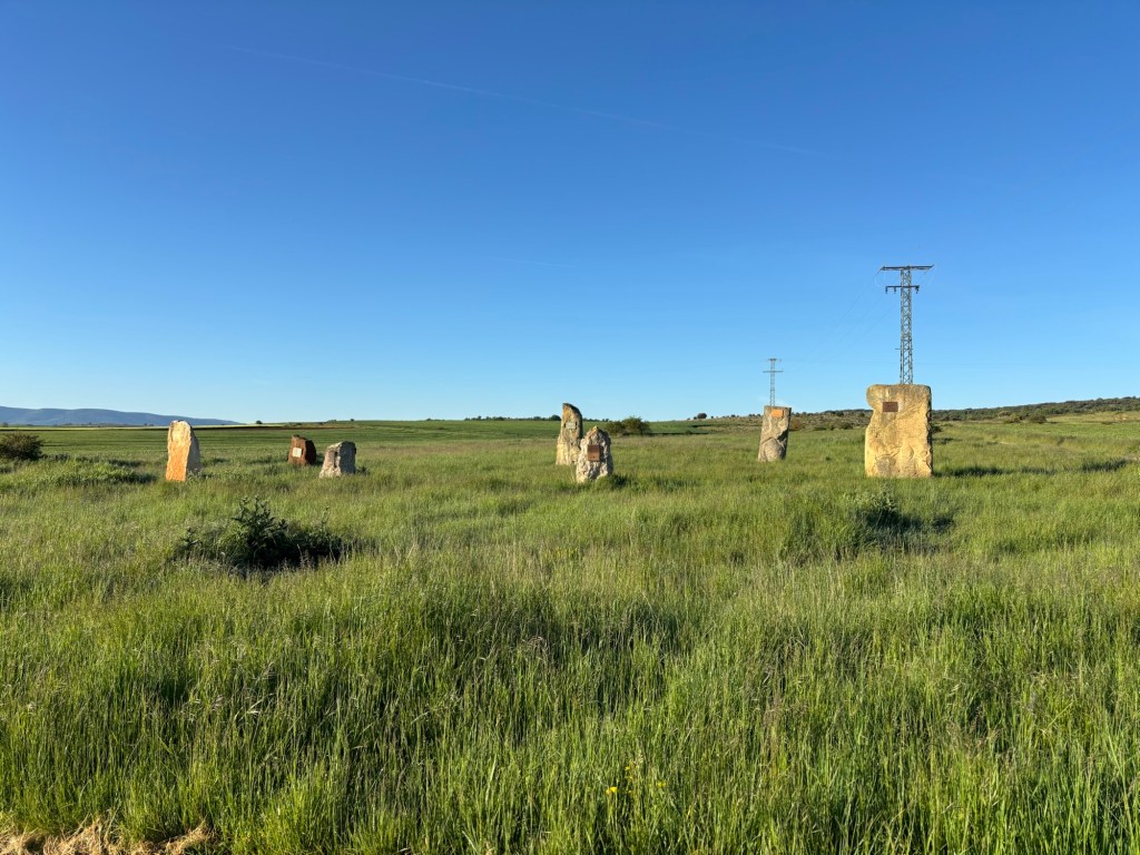 There was a circle of stones off to the left of the road, and I wanted to see what they were. They reminded me of the stones at the top of Alto de Perdon that were a Civil War monument. At that moment I realized that both Lila and I were both used to walking at our own pace, and I am a habitual reader of signs, plaques, and lover of views. I stop a lot. I sensed Lila was ready to make better time. I was also in search of coffee because I left Ages without having breakfast. When we got to the next village I said I was stopping for coffee and she said she could wait longer. We said, “Buen Camino,” and she walked ahead.