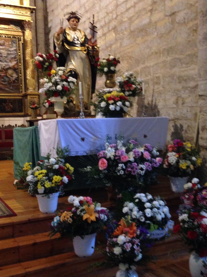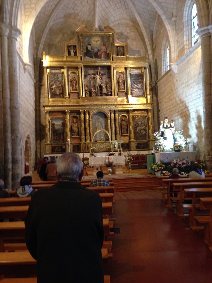 The church was almost full of Fromistans for the service. After the Mass the priest led a litany for San Telmo and from the back of the church a great mass of baritone voices sang the song to San Telmo, and everyone joined in the chorus. It felt like a gathering of the clans. Afterwards everyone greeted each other with hugs and kisses.