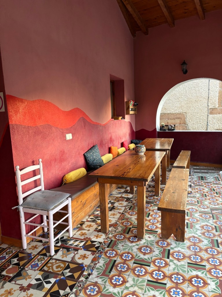 My so called rest day continued with a careful walk down the hill just as hundreds of high school students exited the two secondary schools which are also up there on the hill. I returned to the albergue and met the new women in the room, a very fastidious woman from Korea, and a Spanish woman named Toni. I took a siesta nap, and headed out for an early dinner.